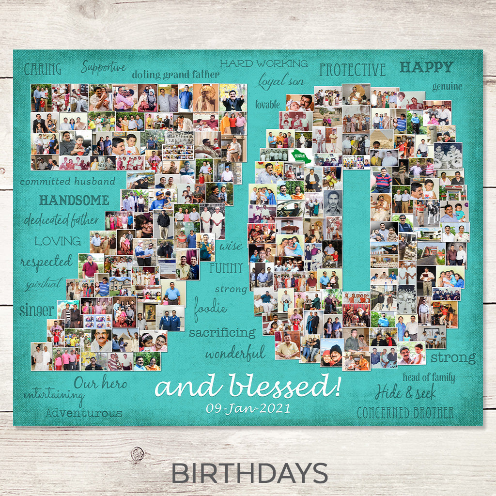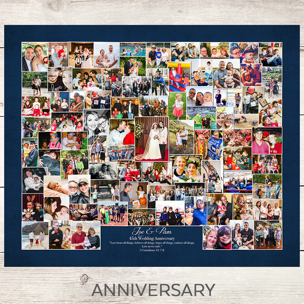 • Photo Collages are designed using your favorite moments! You can use digital photos, scanned photos, iphone photos, Instagram photos - any type.